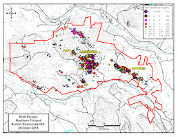 Extensive trenching has been conducted over a distance of more than 8 km from YNot to the Notches area. A total of 40 individual trenches have been excavated, mapped and channel sampled. Assays are pending for the majority and will be compiled accordingly. Trenching has confirmed that many boulder sources are in bedrock immediately beneath or proximal. This is common across Risti. Many more targets remain to be trenched and this will continue in spring 2019. Several trench targets will be drill tested during the current campaign.
